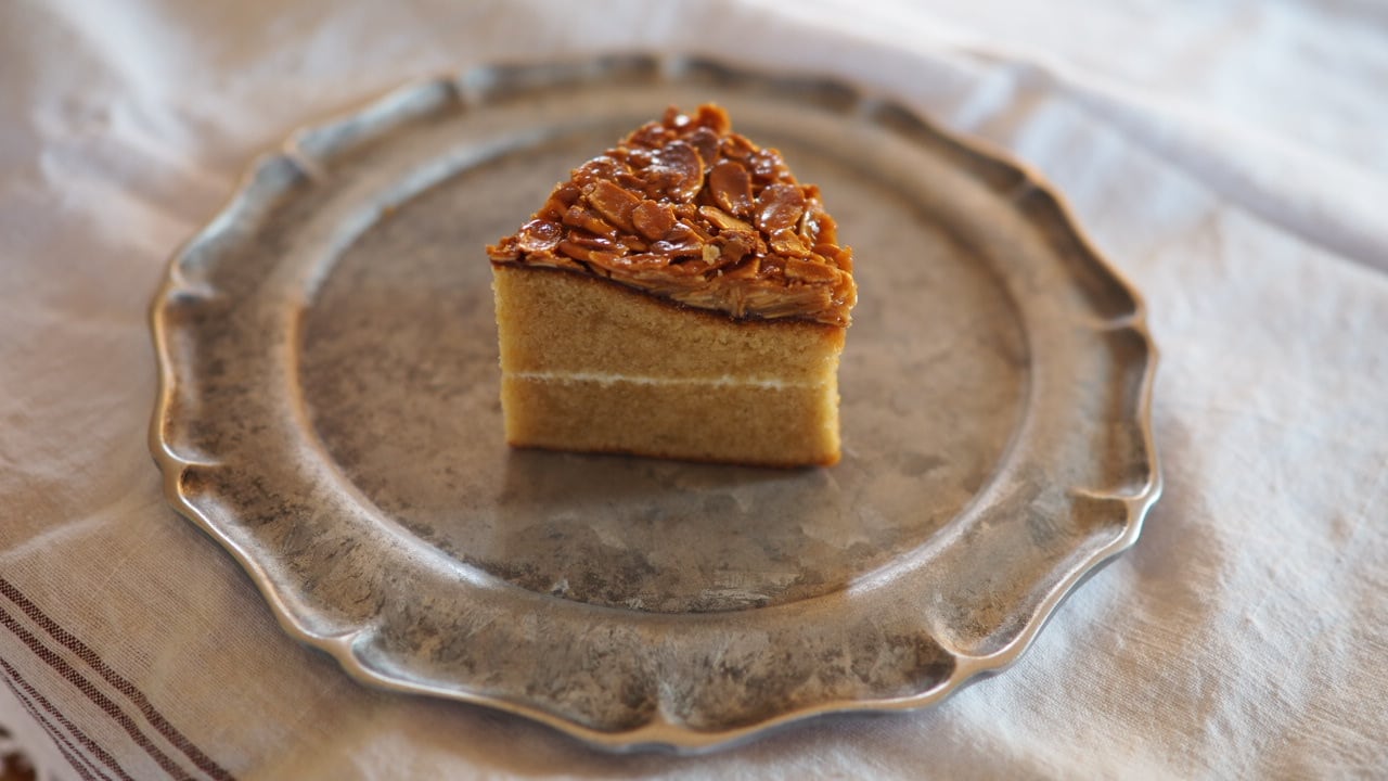 香ばしくキャラメリゼしたフロランタン生地をたっぷりとのせて焼き上げた、ドイツの伝統菓子「ビーネンシュティッヒ」。